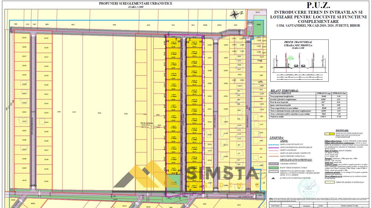 Simsta Residence, propune spre vanzare teren intravilan cu suprafata de 500 m2 situat in Santandrei Str. Lotus colt cu Str. Viorelelor